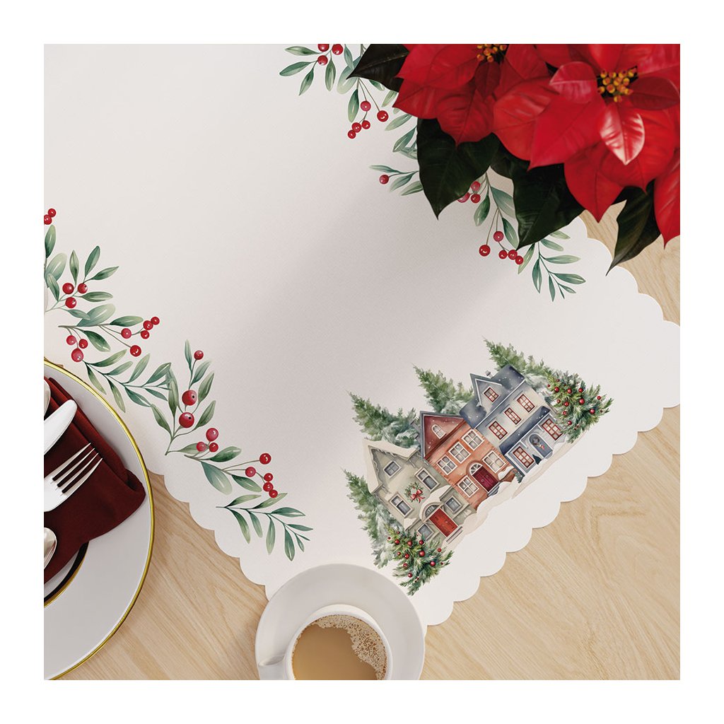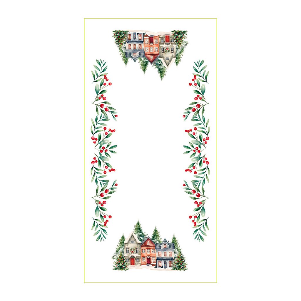 Vianočný vodeodolný behúň s motívom zimného mestečka NINA 60x120 cm