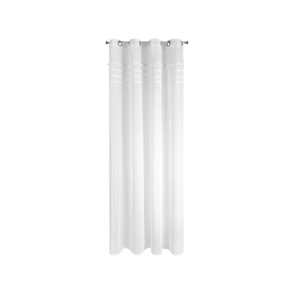 Elegantná biela záclona EDITH s moderným charakterom. Hladká dekorácia okna je v hornej časti zdobená štyrmi rôznymi lemami vrátane brmbolcov a bižutériou.