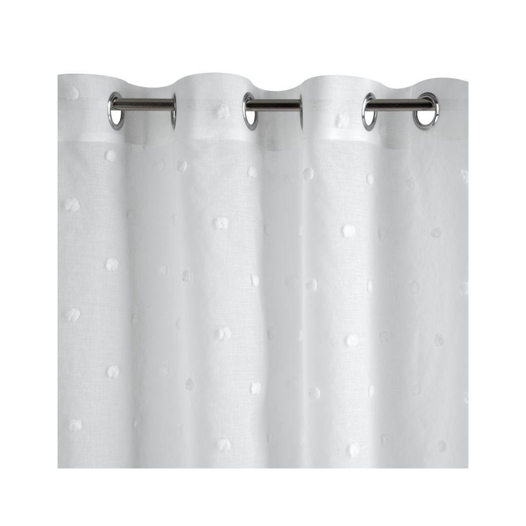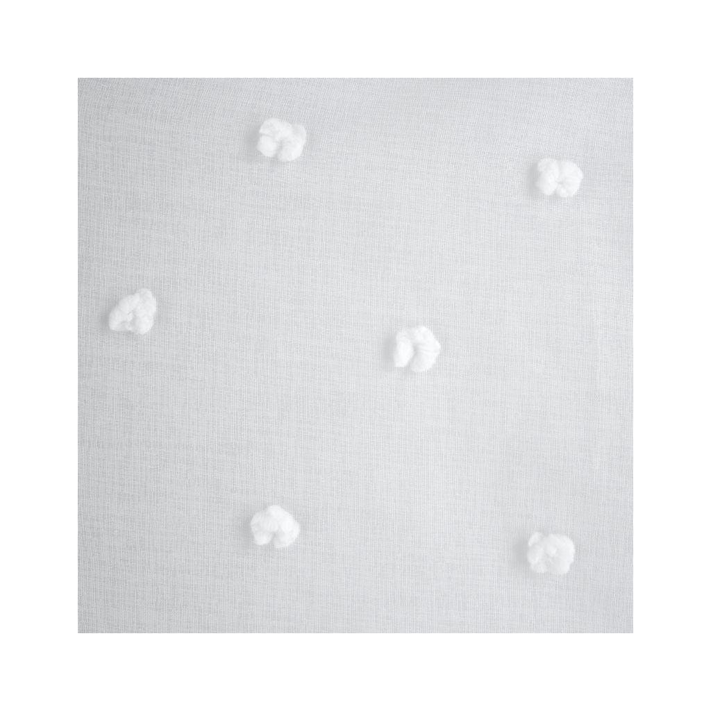 Odporúčame bielu záclonu LIWIA zdobenú po celej ploche mäkkými guličkami symetricky usporiadanými na hladkej polopriehľadnej tkanine. Odporúča sa najmä do moderných interiérov, ktoré sú vyzdobené v novoromantickom alebo škandinávskom štýle. Bude vynikať aj v detskej alebo študentskej izbe, pričom zdôrazní jej sviežosť a pôvab. Vďaka ôsmim kovovým krúžkom v hornej časti záclony vyzerá látka fenomenálne po zavesení na záclonovú tyč a vytvára jemné vlny. Krúžky umožňujú jenododuchú výmenu záclony.