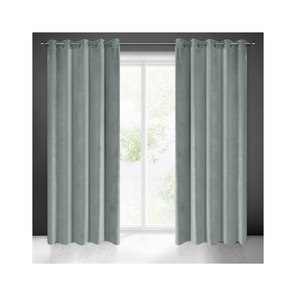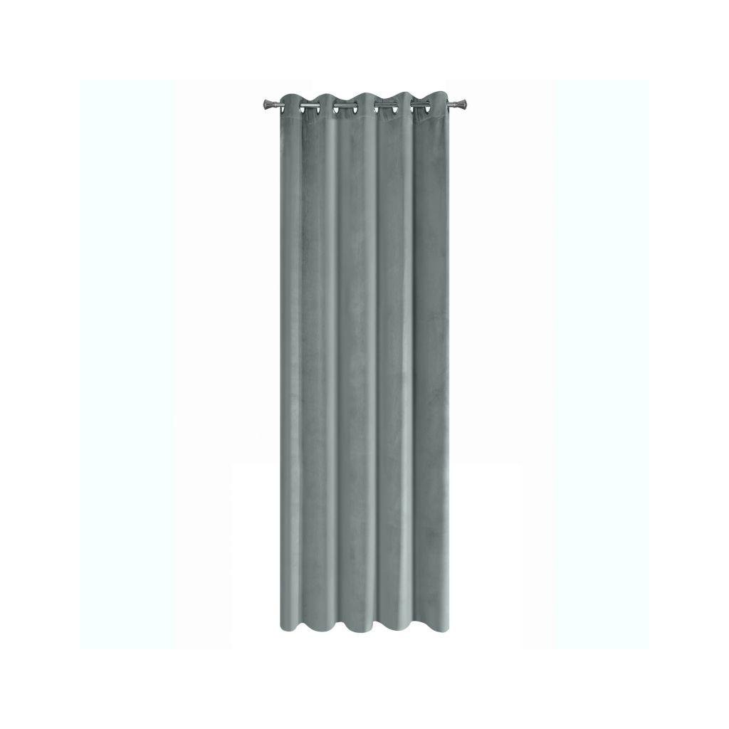 Hladký, jednofarebný záves z mäkkého zamatu s charakteristickým zamatovým leskom. Jednoduchú dekoráciu okien umožňuje až 10 širokých krúžkov. Šírka: 140 cm, dĺžka: 250 cm, sivá farba.