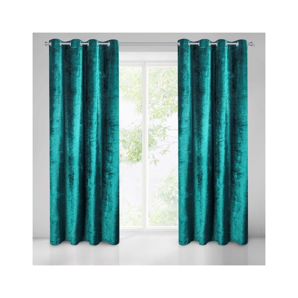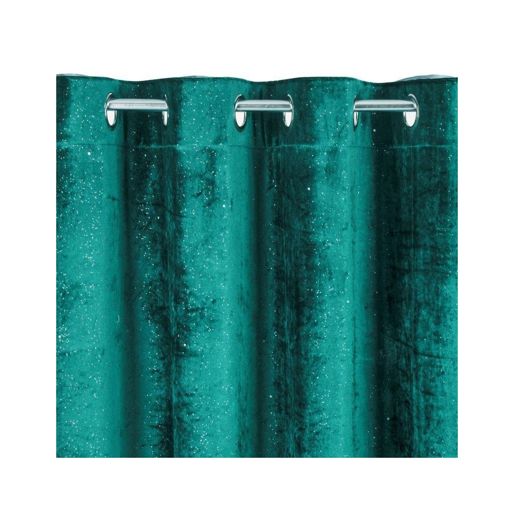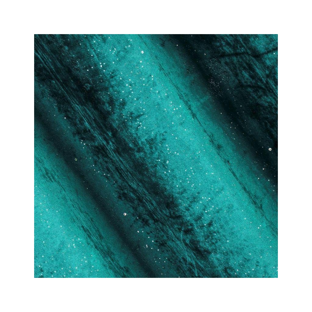 Elegantný a pôsobivý záves z hustého zamatu zdobený na celom povrchu trblietavými časticami. Poskytuje komfortnú izoláciu od vonkajšieho svetla. , šírka: 140 cm, dĺžka: 250 cm,tyrkysová farba.