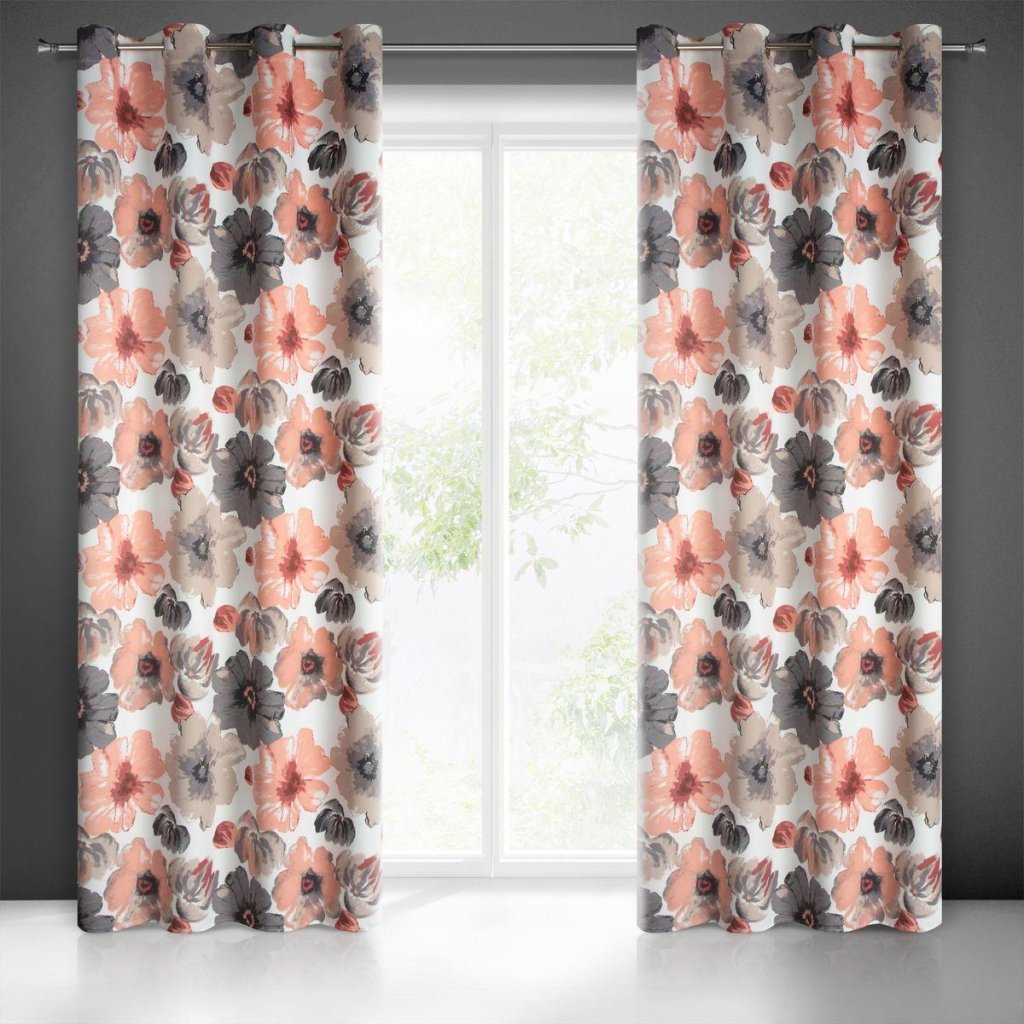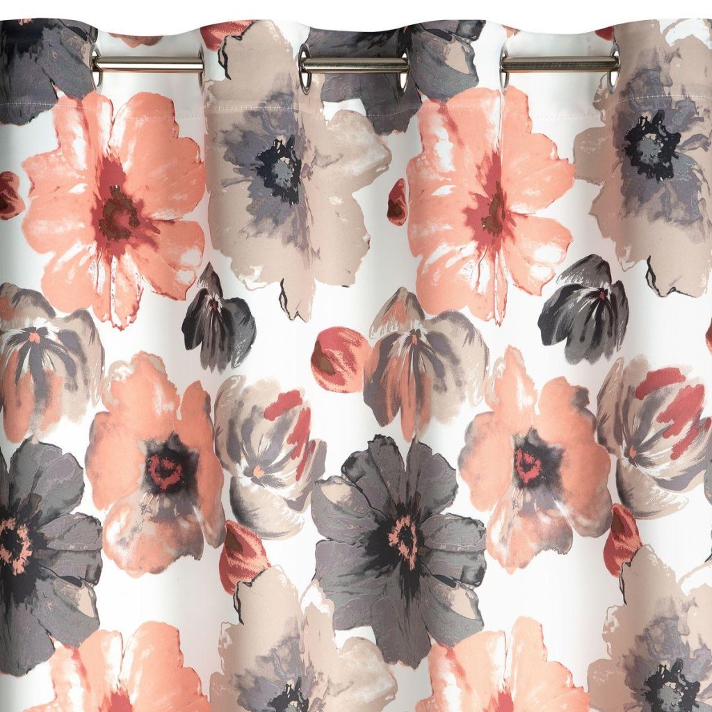 Ozdobte svoj interiér kvetmi! Motív kvetov maľovaných štetcom v sivo-tehlových farbách na kontrastnom bielom podklade zdobí záves TAMARA z mäkkej a na dotyk príjemnej látky, ktorá má navyše zatemňovacie vlastnosti. Kvetinový motív oživí interiér príjemnou atmostérou a nezvyčajné zatemňovacie vlastnosti látok ho ochránia pred nadmerným slnečným žiarením. Tento vzor sa hodí k neoromantickým aranžmánom a vďaka chladným akcentom sa perfektne hodí do moderných interiérov. Praktické kovové krúžky, namontované v hornej časti závesu, zaručujú rýchlu a jednoduchú výmenu okennej dekorácie. Verte, že nič neosvieži interiér viac ako ľahké a jemné kvetinové motívy, ktoré dodajú vášmu interiéru letnú sviežosť každý deň!