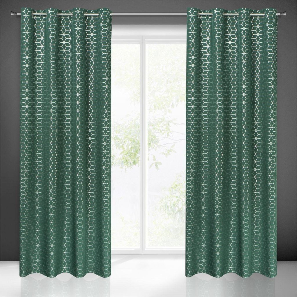Elegantný, minimalistický zelený záves CUBE so striebornou geometrickou potlačou. Ideálny do spálne alebo obývacej izby. Šírka: 140 cm, dĺžka: 250 cm. Zloženie: 100% polyester. Gramáž: 140 g/m2. Žehlenie z rubovej strany. Praktické zavesenie na kovové krúžky.