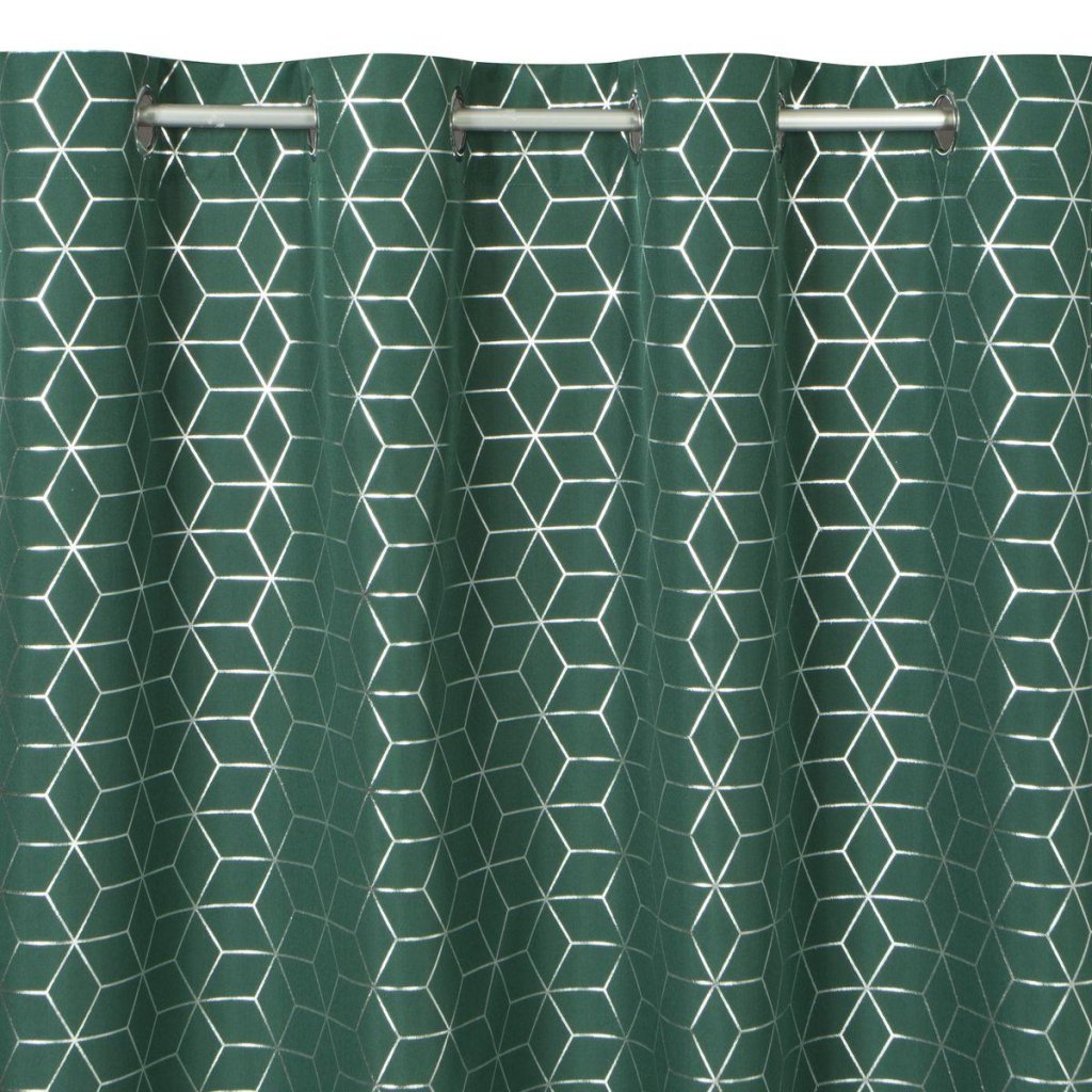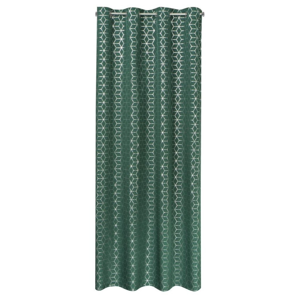Zelený záves CUBE so strieborným geometrickým vzorom 140x250 cm