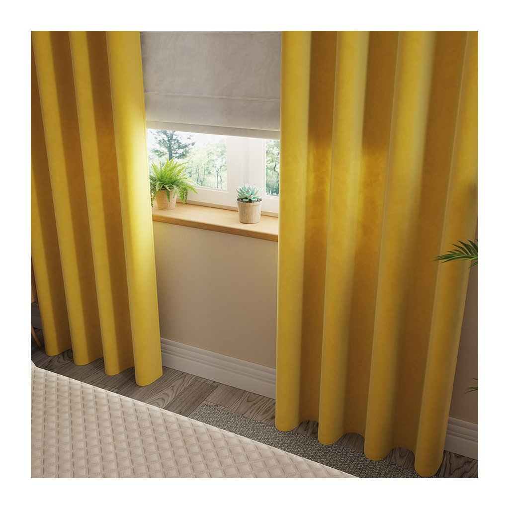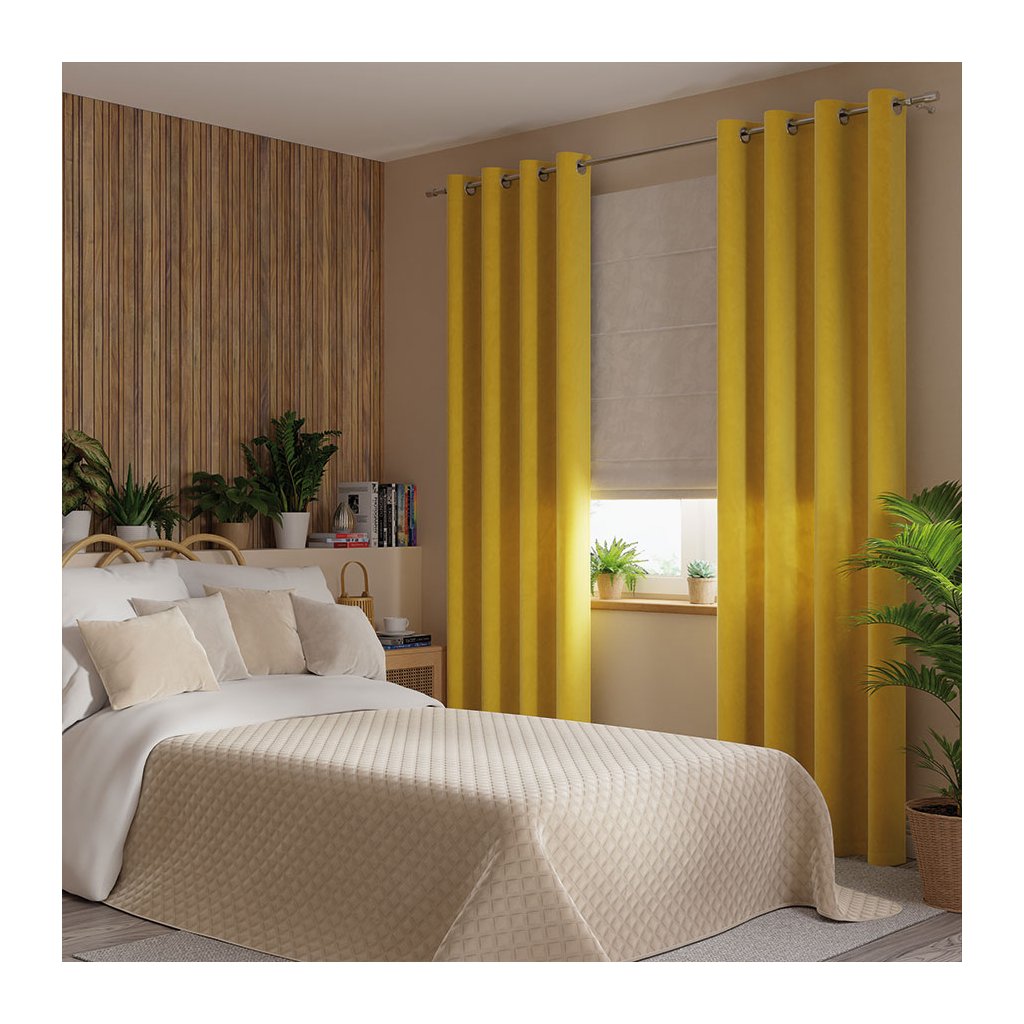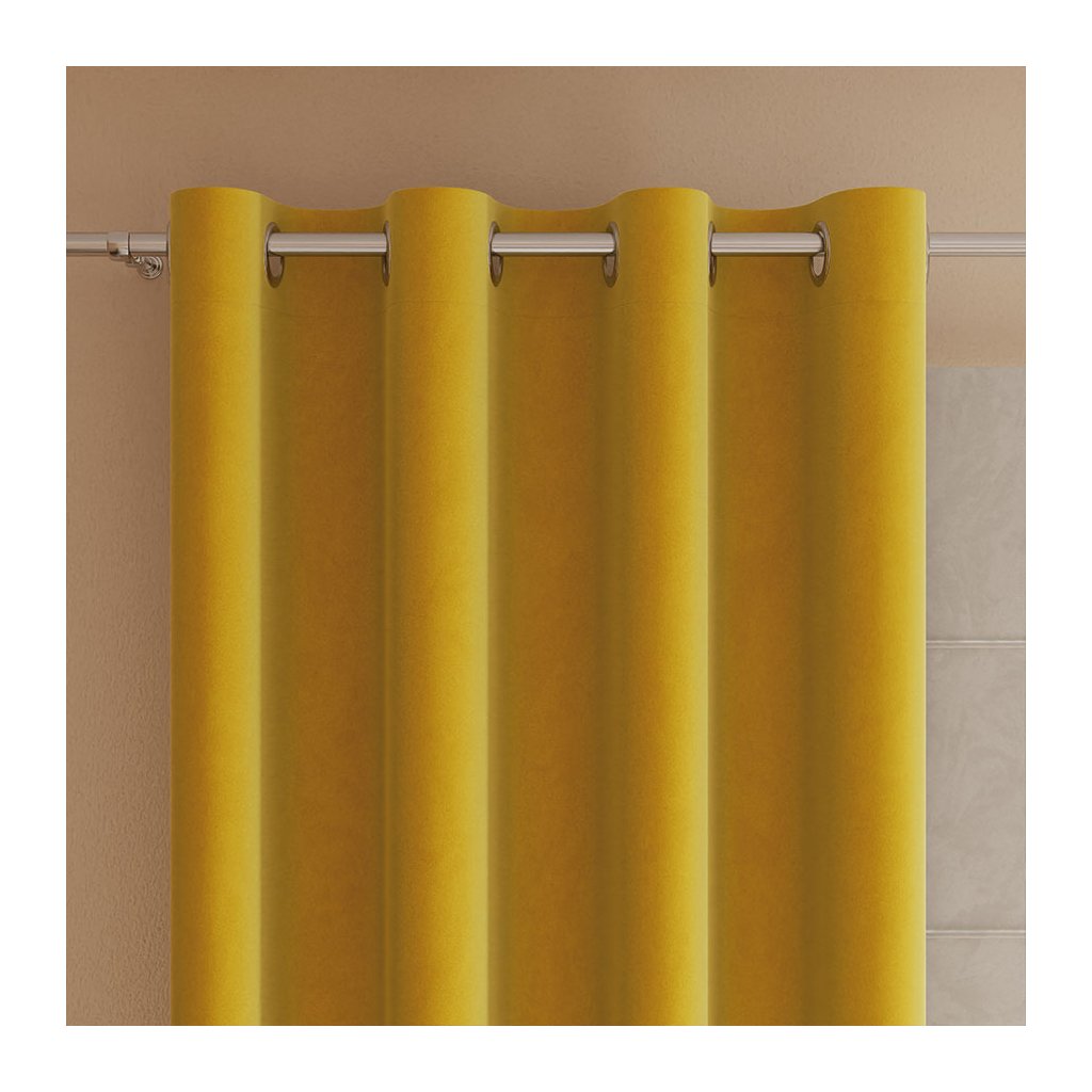 Žltý zatemňovací zamatový záves na krúžkoch VELVI 140x240